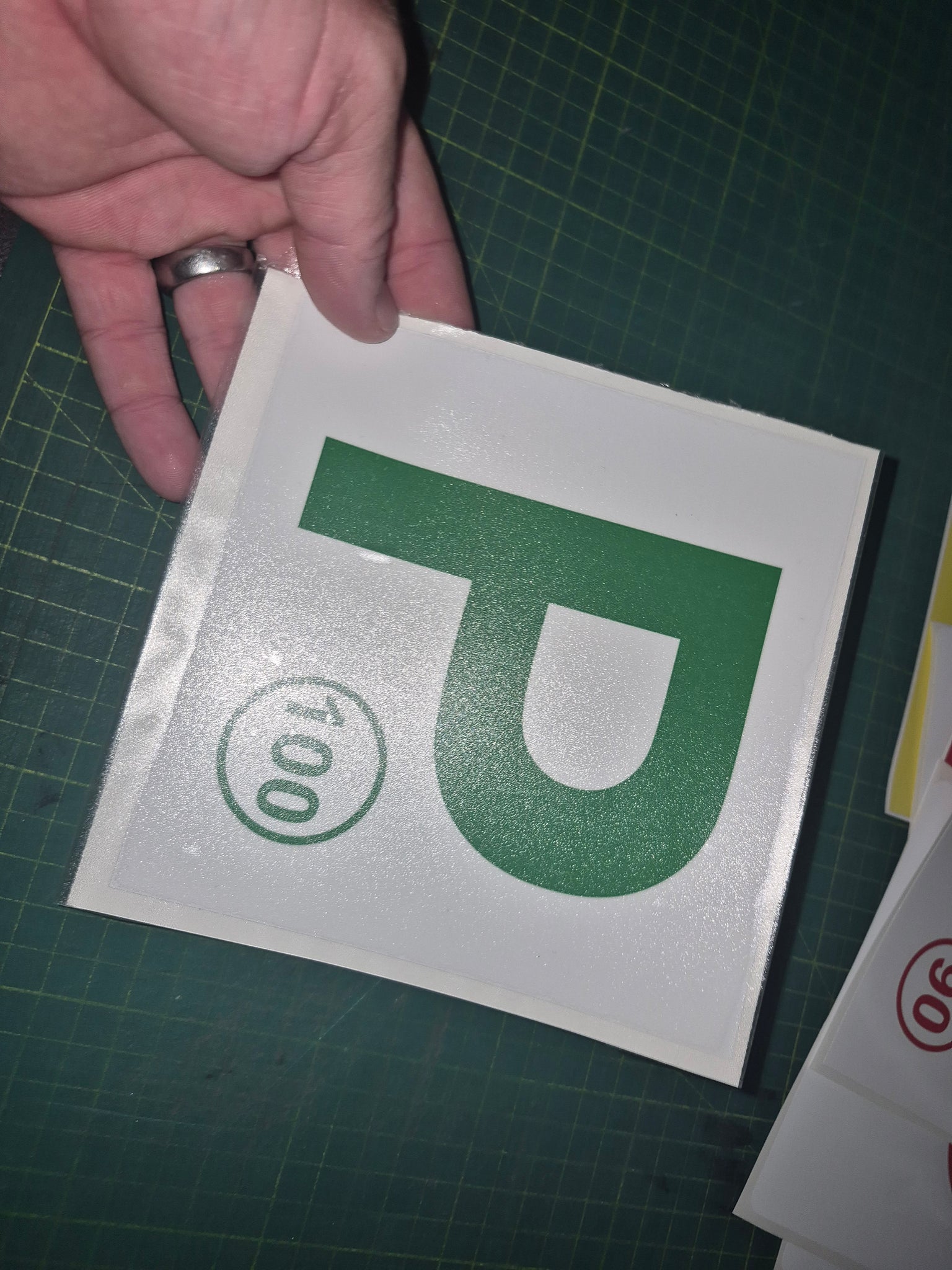 2 x Green P plate 7 yr vinyl stickers 150 mm Australian free post Probationary