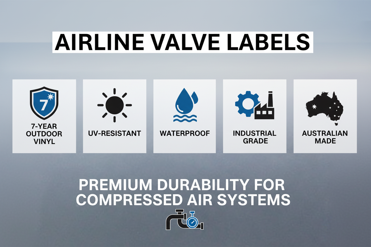 Ensure clear and safe labeling of your equipment with this Airline Valve sticker, designed for aboveground tanks, industrial systems, and various heavy-duty applications. Whether for an air compressor, gas system, or other connected setup, this high-quality vinyl decal provides essential clarity for workers and operators. Australian made in Brisbane for industrial use.