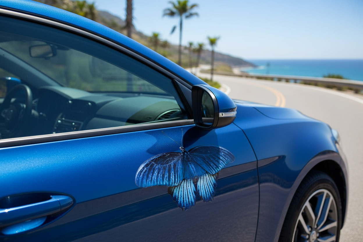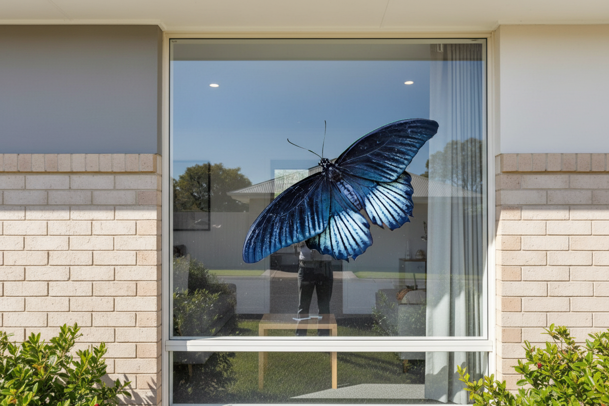 A striking blue tribal butterfly design, precision cut from premium outdoor vinyl. Perfect for cars, 4WDs, boats, caravans, windows, toolboxes, or any smooth surface.