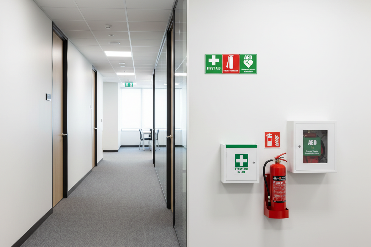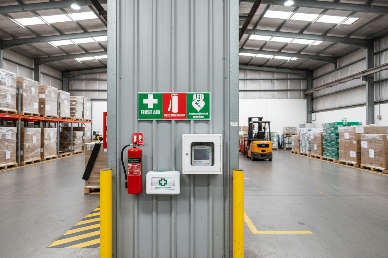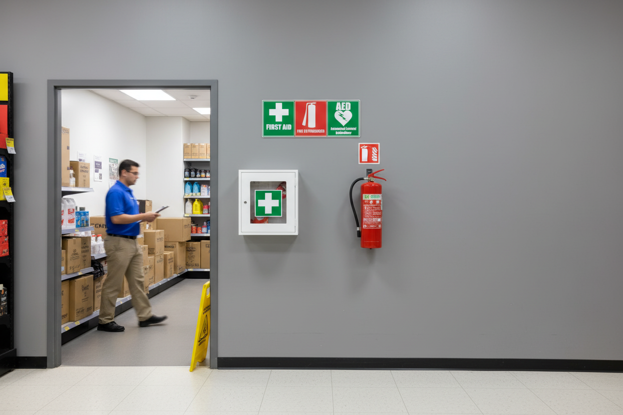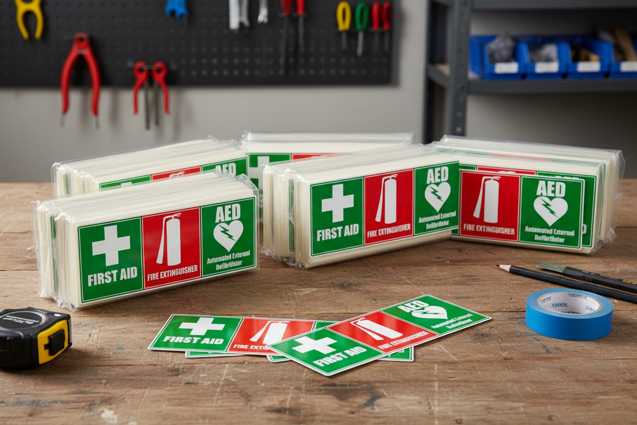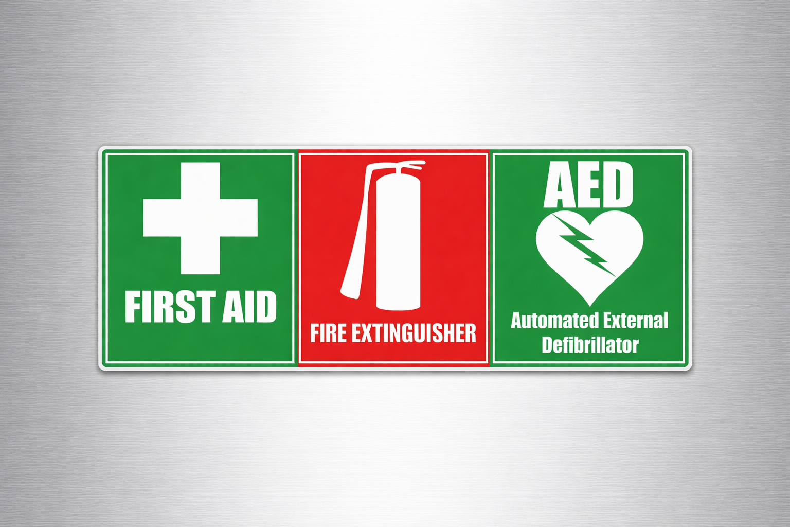 First Aid, Fire Extinguisher & AED Sticker – Emergency Safety Decal (Multiple Sizes)