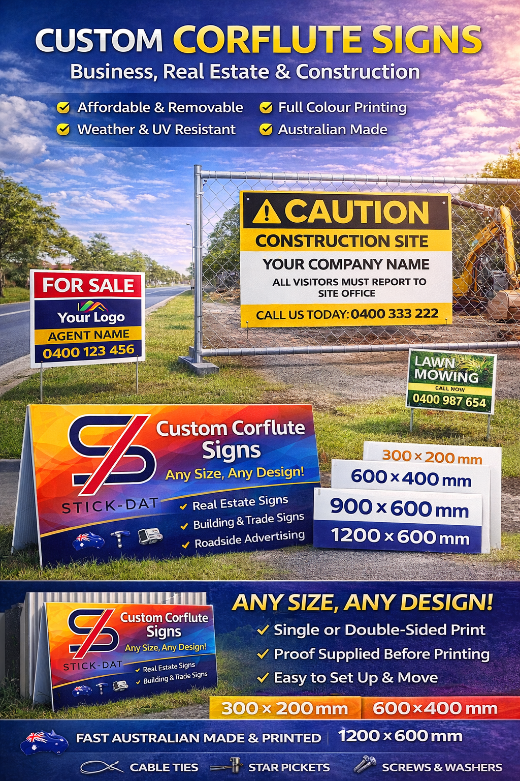 - Weather Resistant: UV-resistant inks, waterproof, built for Australian outdoor conditions