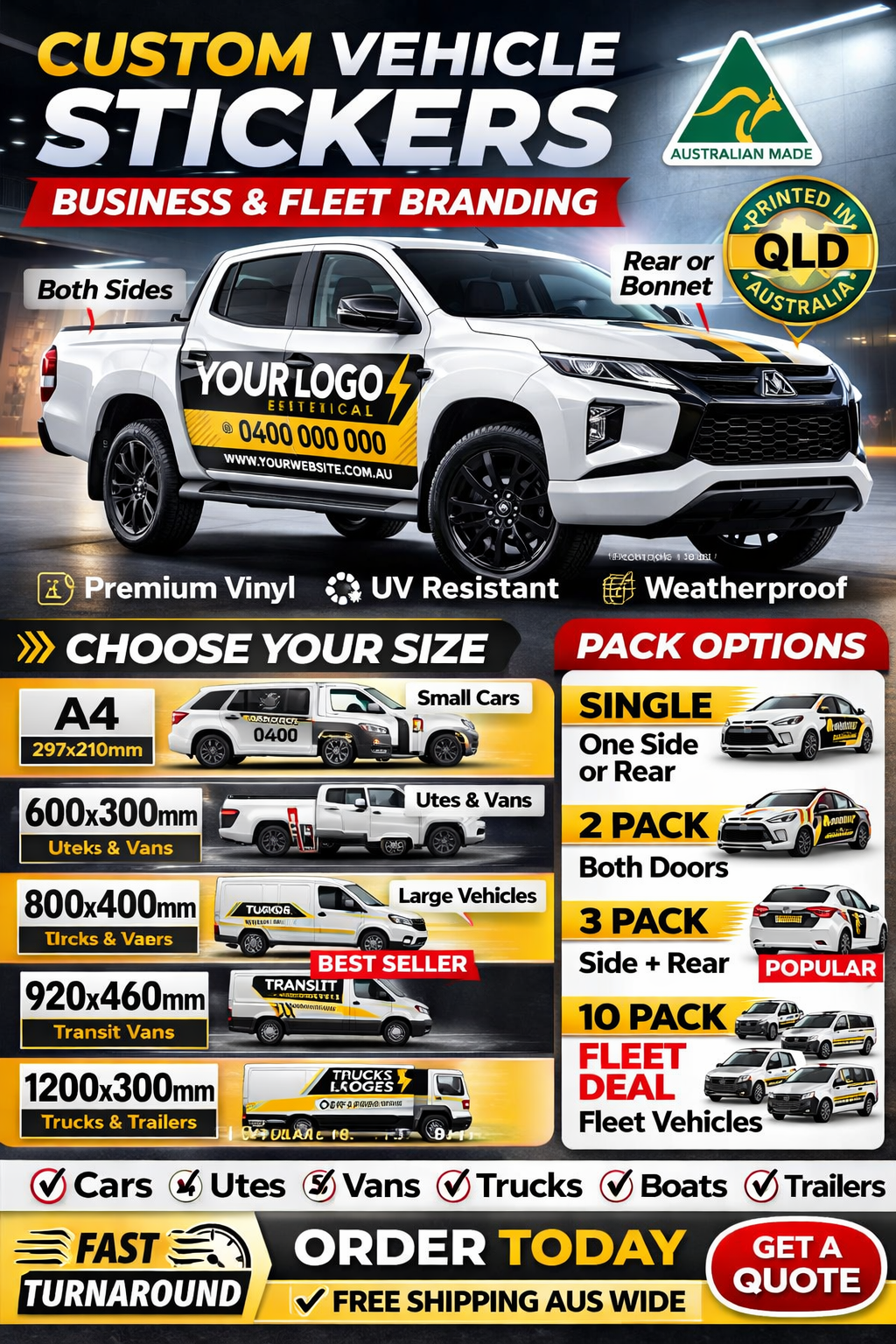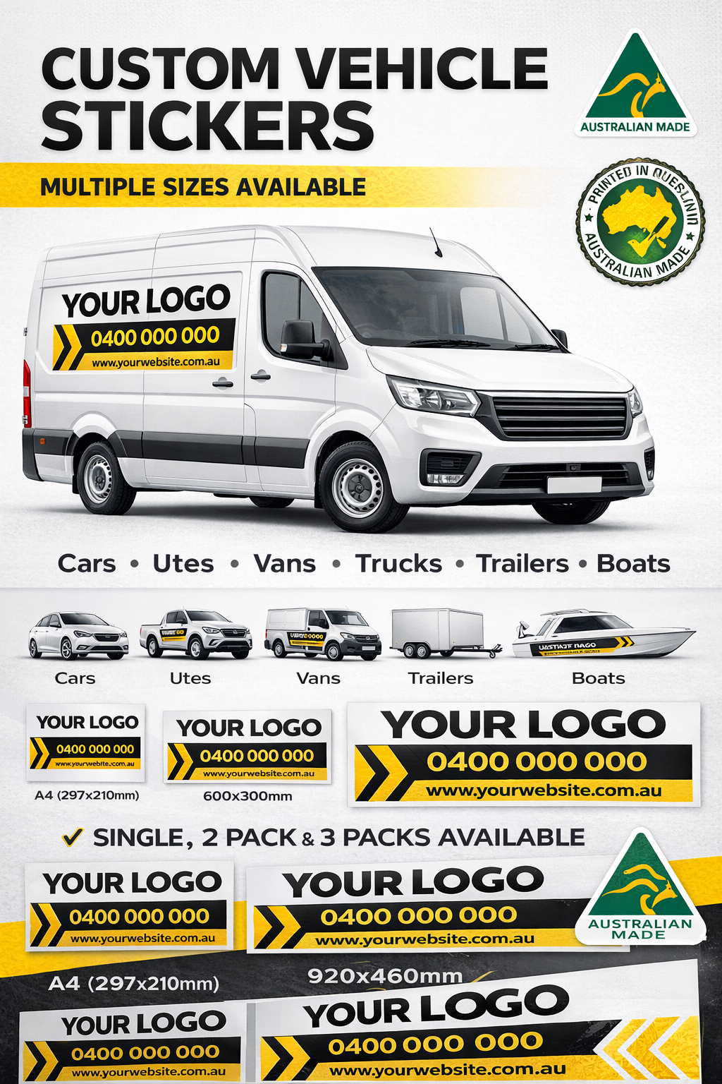 Choose your size and pack option below to suit your vehicle layout — whether you're branding one car or an entire fleet.