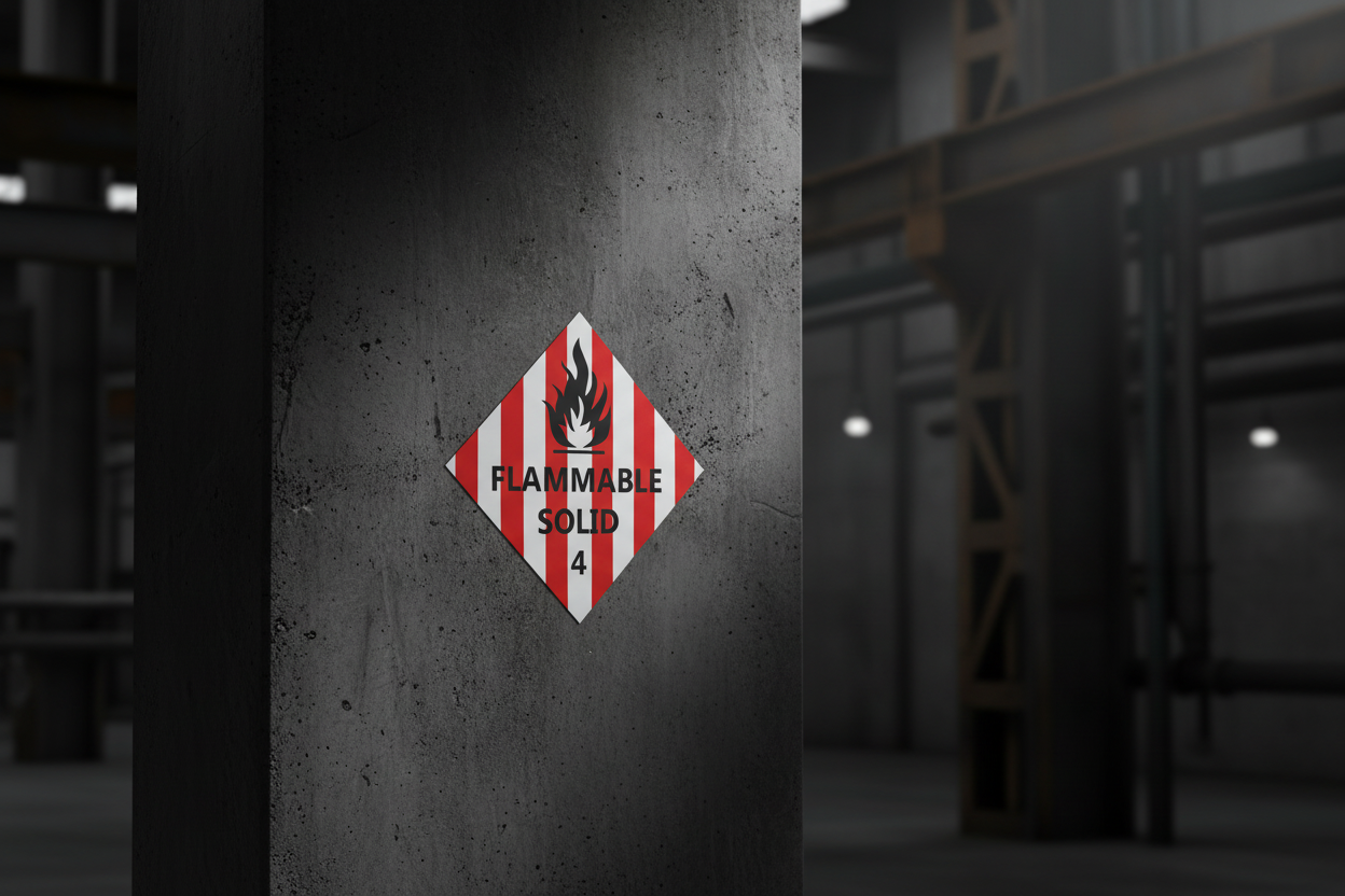 - Class 4 dangerous goods label – Clearly identifies flammable solids