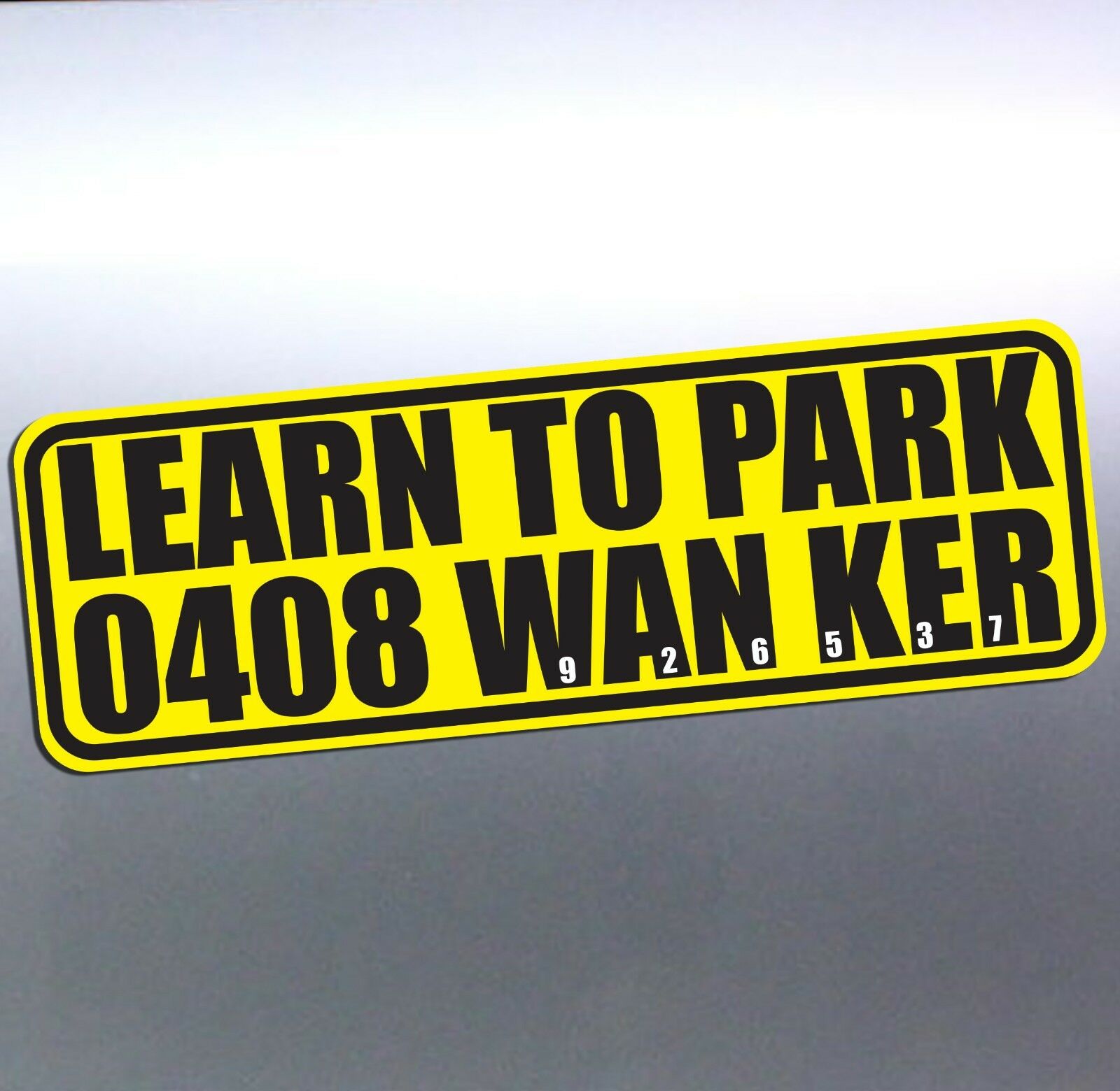 Learn to park wanker Yellow and black sticker on side door window