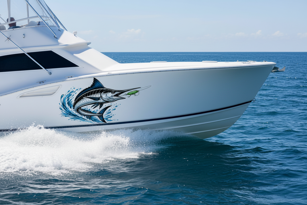 Take your boat to the next level with this aggressive marlin strike decal, designed for serious offshore anglers.