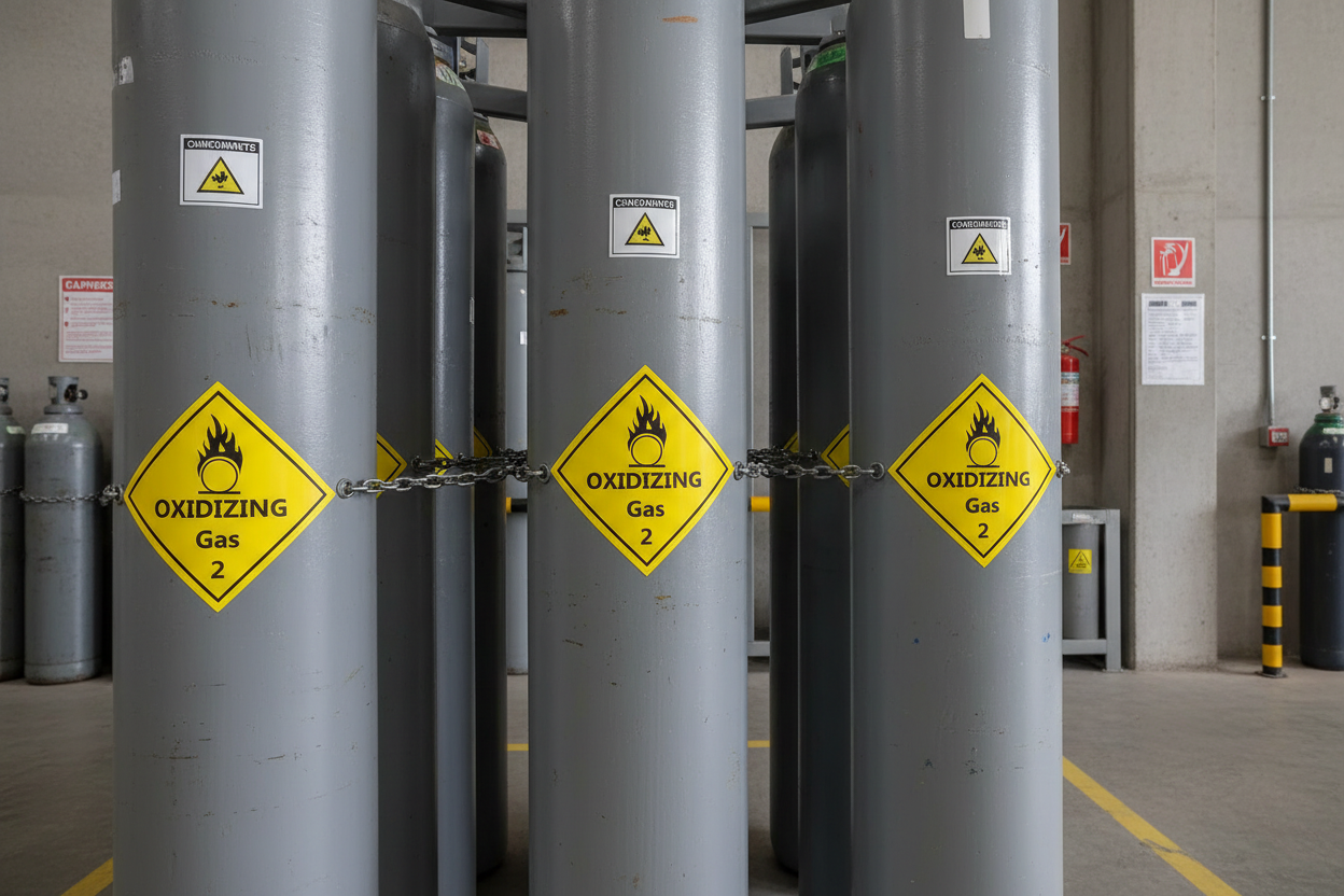 Perfect for: Gas storage, laboratories, industrial facilities, warehouses, manufacturing plants, transport vehicles, oxidizing gas areas, and any workplace requiring Class 2 HAZMAT compliance.