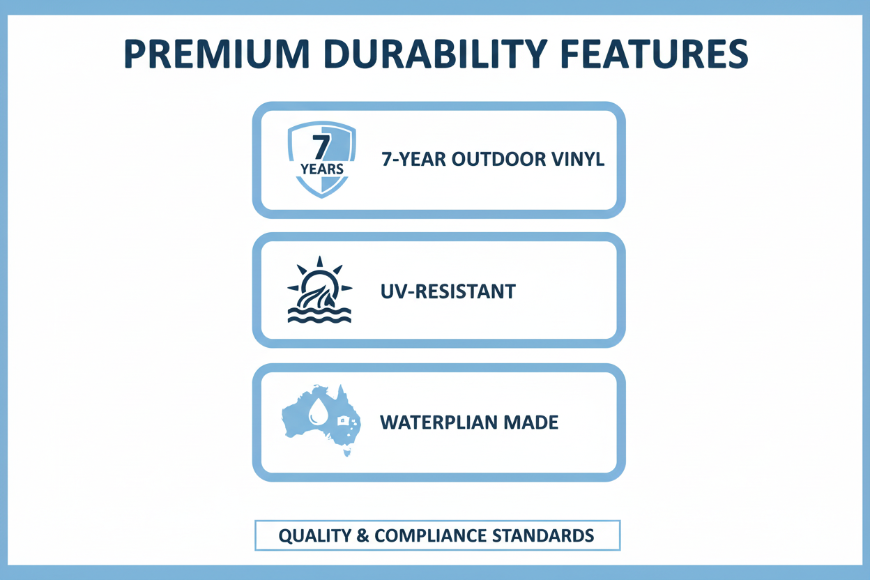 Manufactured from durable 7+ year outdoor vinyl for long-term indoor or outdoor use.